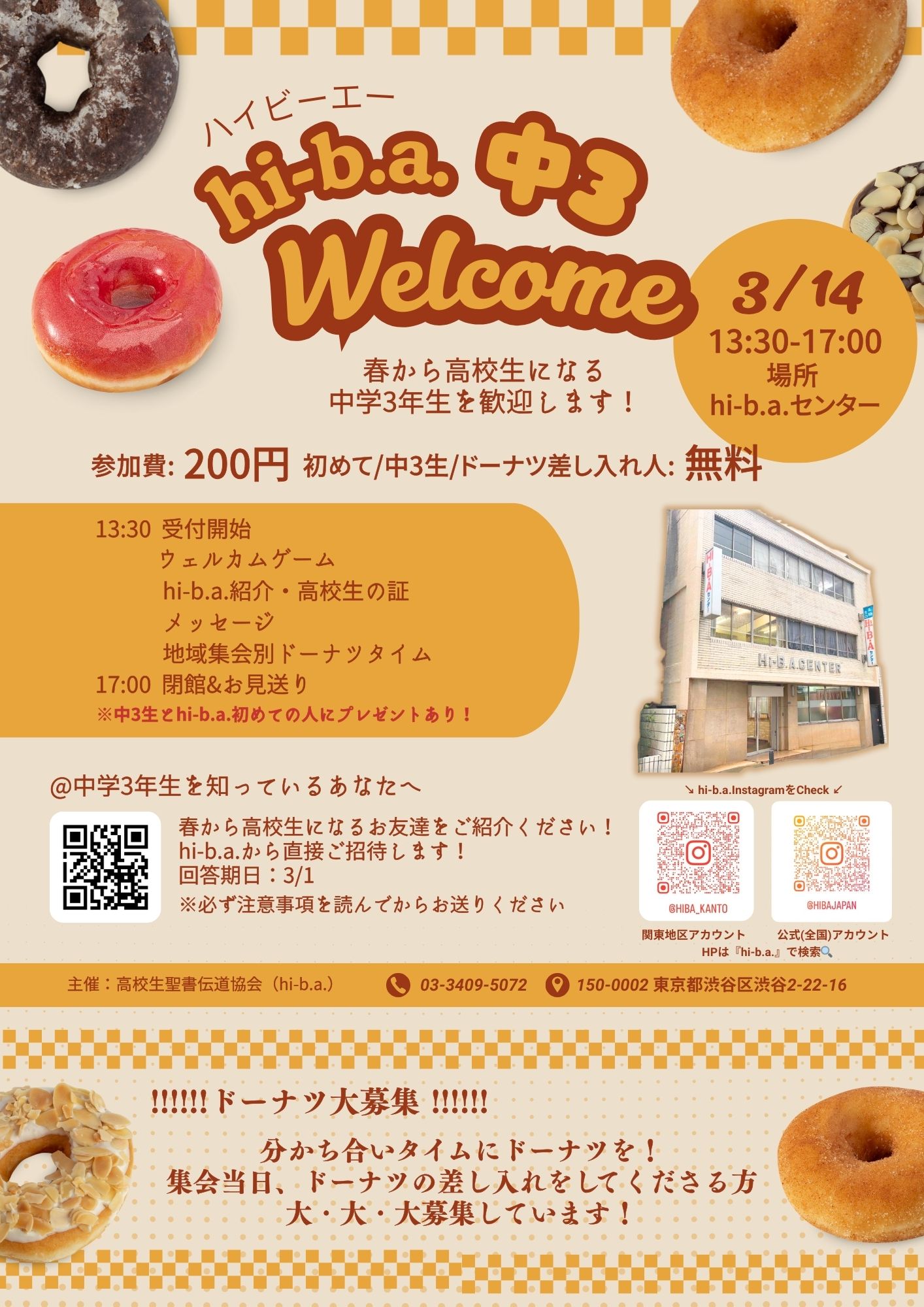 3/20(金・祝)hi-b.a.センターにて、卒業祝賀会を行います! 卒業生はもちろん、 在校生のみんなも集まって、卒業生を祈って送り出そう! 卒業生の皆さんには、1人1分で高校時代の恵みを話してもらいたいので、一言を用 […]