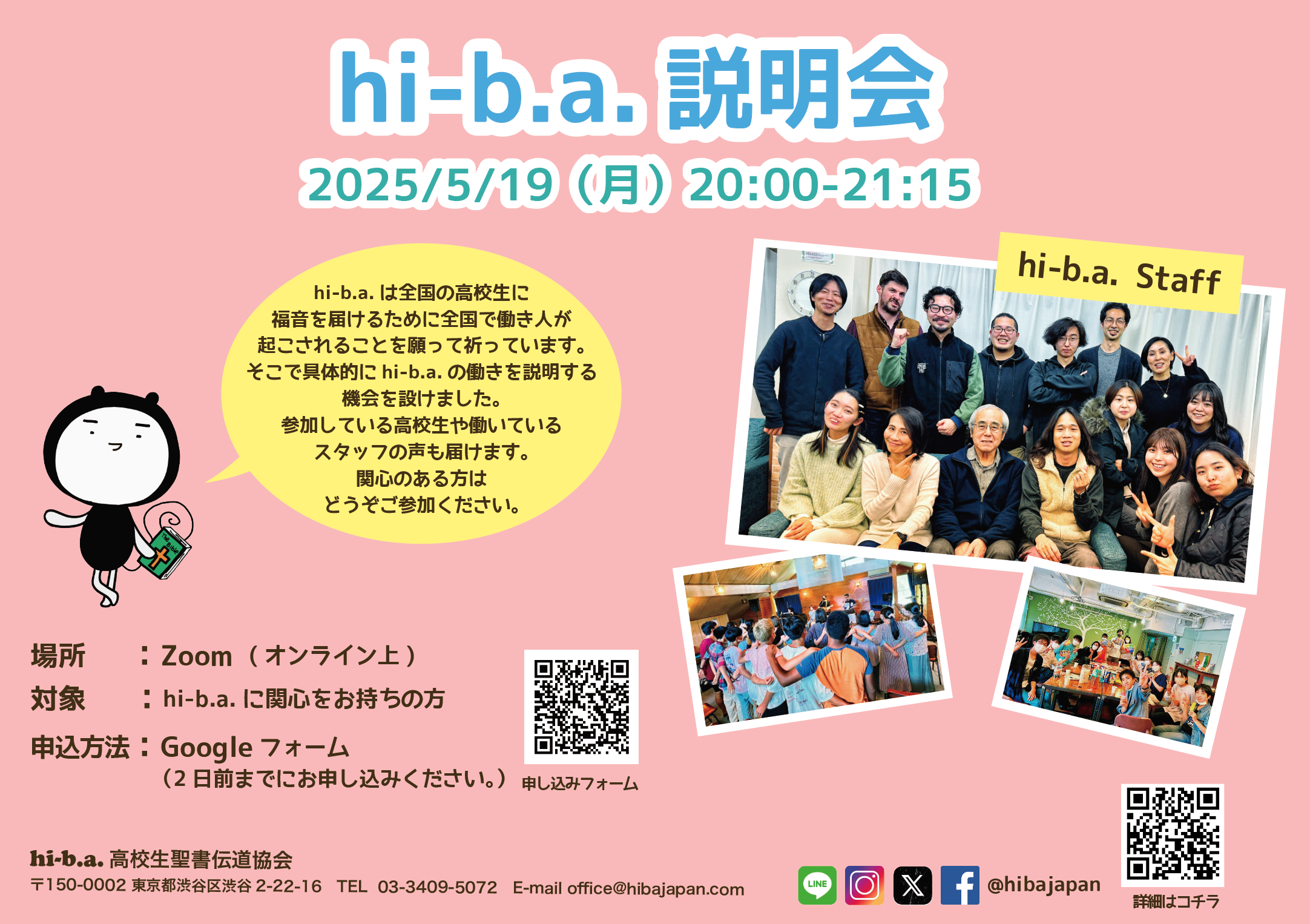 hi-b.a.は全国の高校生に福音を届けるために全国で働き人が起こされることを願って祈っています。
